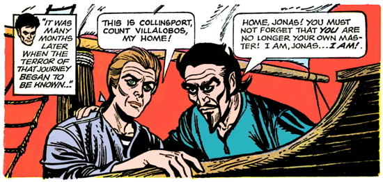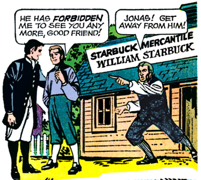 “Jonas! Jonas Starbuck!” says Barnabas, greeting his friend Jonas Starbuck. Everyone in the comic book says each other’s names on an average of once per always, because nobody trusts the artist to render a recognizable set of features from one panel to the next. “What causes such sadness, dear friend?”