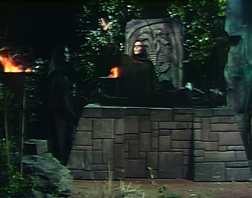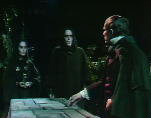 2. Well, I love you and you always make me laugh, especially when you talk about Julia. (However, “a clown explosion in the south-central region” manages to be both hilarious and somewhat dirty! I love it!) And I’ll grant you that this opening is haphazard and the ceremony at the altar is laughable. But I don’t share your feelings that the whole Leviathan story is like this, and even though you will probably be able to drag out ratings sheets to prove that this story was indeed the beginning of the death of DS, I found much to like about it. It has its lapses, but on the whole it makes more sense than half of 1897 ever did. I take it your biggest concern is that it’s boring, but the next few weeks showing us the family, Julia’s reaction to the “new” Barnabas, the introduction of the Todds and the reveal of the mysterious stranger are all really good stuff. I think that, based on 1897, this saga will feel “small potatoes” to many, but it taps into some new material, like the whole earth cult thing, it gives Nancy Barrett some cool, almost normal soap-opera, stuff to play, it makes Julia the true hero of the tale for a while, and it lets Jonathan Frid play a completely different kind of evil – pure malevolent nastiness with a full-toothed smile that is more creepy than anything else he’s done . . . at least until the stupid retcon happens.We can get into that – and the neutering of Quentin – at a later time. But it’s 1970 again, and it’s good to be back!