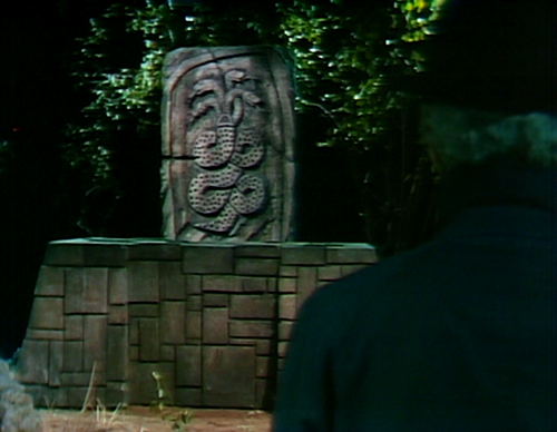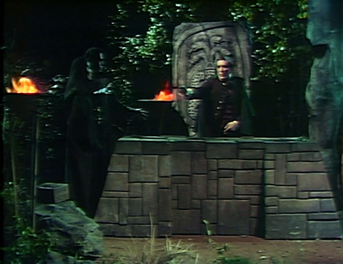 A couple words from Ban antiperspirant and Di-Gel antacid later, we roll back from a static shot of the altar to show the stranger standing there, looking at it. It just apparated in front of him out of fuck-all nowhere, but he doesn’t seem super concerned about it. He just turns and walks away. The altar tries some more thunder and lightning, but it’s no use. The man is simply not in the market for supernatural Chromakey altars.