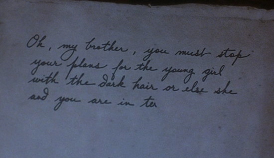 Now, the reason why I’m bringing all of this up again is that Matthew Hall wrote today’s episode, and it’s got a scene that calls back to an element from his dad’s script. Back in episode 4, Barnabas found a diary kept by his little sister Sarah, who died at age 10 in the 1790s. Sarah used the diary to communicate with Barnabas at the end of the episode, ghost-writing a message about how he shouldn’t mess around with Vicki.