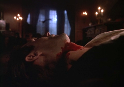 This is not a stealth operation, like it was in the original show — a dark figure appearing at the window, and then sneaking up on a sleeping Josette. In this version of the story, the zombie just walks into the house while everybody’s awake, and Josette shrieks her head off. We see everybody come running to see what all the racket is about, but somehow the zombie has already sped away into the woods.