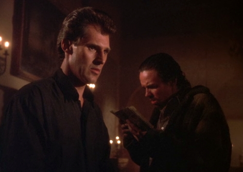 1. Yeah, that’s Adrian Paul. It was hard to get a decent screencap because it’s 1991 Dark Shadows, which means everything is dark and smoky and tilted and all the way up Ben Cross’ nasal passages.