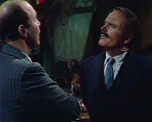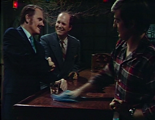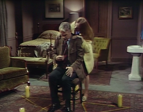The weirdest thing about this sequence is that it takes Barnabas, the show’s protagonist and star, and turns him — for one night, and one night only — into an amused, disinterested observer, like Rod Serling wrapping up a particularly ironic episode of The Twilight Zone. Although I suppose the Serling stuff happens at the very end of the scene; in the early stages, Barnabas is hosting a weird mix of talk show, shakedown and therapy session.