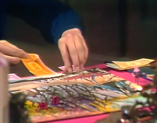 Yes, the backgammon board was my first guess. Did Hasbro make those combination boards back then? It’s difficult to see the lettering actually. The pause button for the DVD player on my computer has a split-second slowing mechanism, creating a blurring effect for the paused image.