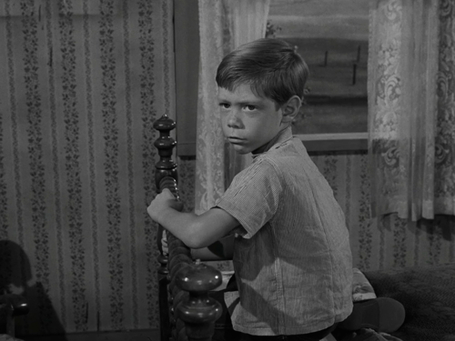 In the story, Anthony Fremont is a six-year-old boy from Peaksville, Ohio, who — for no particular reason — has been born with godlike powers. He’s cut the town off from the rest of the world, closing the roads and cutting off the phone lines. He doesn’t like singing, or electricity, or barking dogs, so he’s made all of those things disappear. He hates being scolded, and he only wants to be told that he’s good, and that everything he does is good. And he can read people’s thoughts, when he wants to, so everybody has to make sure that they’re always thinking good thoughts.