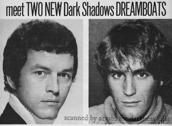 The picture of the Dark Shadows dreamboats is from 16 Magazine, naturally, from March 1970. The little bio of Christopher Pennock includes a surprising piece of information: “His TV credits include the role of Dr. Ross on The Guiding Light and, of course, his portrayal of Derek, a man of supernatural power who emerges from ‘the thing in the box’, on Dark Shadows.