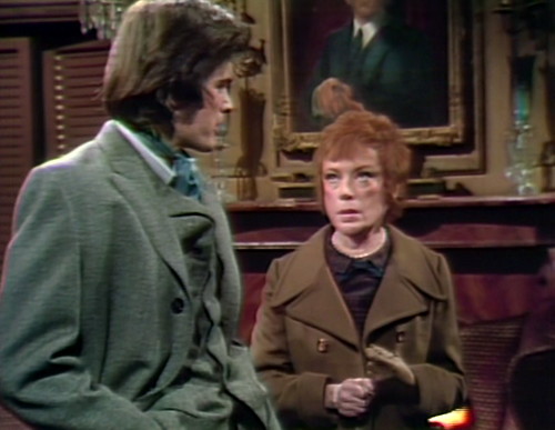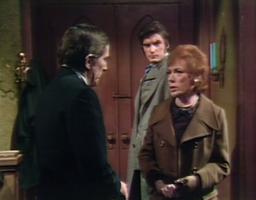 Oh, and look at the blocking. Quentin and Julia are having a conversation in the Old House about all of the Leviathan conspiracy nonsense, because Quentin has to listen to recap now, and then Barnabas comes in, and all of a sudden it’s a Barnabas/Julia scene, and Quentin has to stand in the back and try to look interested.
