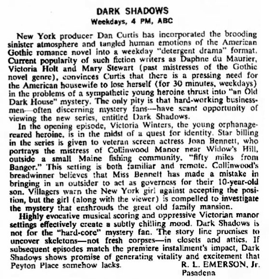 1. Even some who were watching from the beginning apparently thought that Roger and Liz were married. After Dark Shadows had already been on air for around 3 weeks, a viewer wrote in to a newspaper to defend the show against critics. Recounting the debut episode the viewer writes: