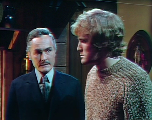 “Shall you give your explanations now, for the crimes you have committed?” he demands. “For the chances you have taken, the power you have usurped?” Then we cut away for a Collinwood scene, and when we come back, Nicholas is still browbeating Jeb.