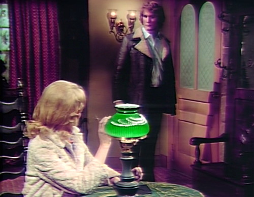 Meanwhile, at Collinwood, Carolyn is wrapping up a long, stressful evening, telling her mother that she’s decided to elope with Jeb, tonight. Then she gets a call from the sheriff — not the one that her fiance killed, I guess there’s a new one. The sheriff says that her friend Philip, the nice man from the antiques shop who murdered her father, has broken out of jail, and they don’t know where he is.