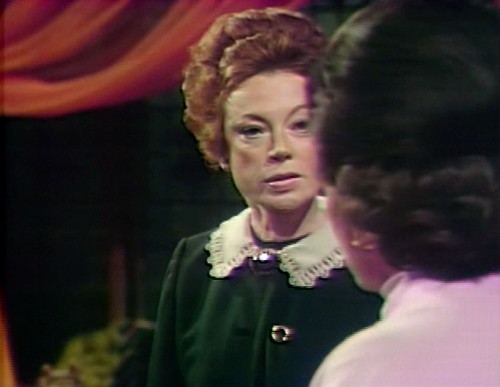 1. I agree on Grayson Hall’s looks here. There were several points in the series when it all came together for her. When she first showed up with her new ‘do after Vicku returned from 1796. But that striking haircut wasn’t well maintained towards the end of 1969 and beyond.At the beginning of the 1840 storyline she also was well coiffed. Here, it’s also her toned down lipstick color that works too.