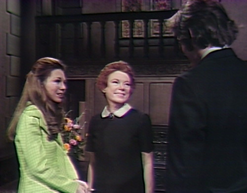 8. I posted earlier about how misshapen I think their “Rebecca” riffing is, but these screencaps show something further I think I missed. In “Rebecca” our heroine is considered plain and wears unfashionable, sensible clothes, but Maggie looks fairly stunning with her pulled-back hair and Ohrbach’s Junior Sophisticates mini-skirt outfit in bright green. Why shouldn’t Quentin marry her? They make a lovely couple.