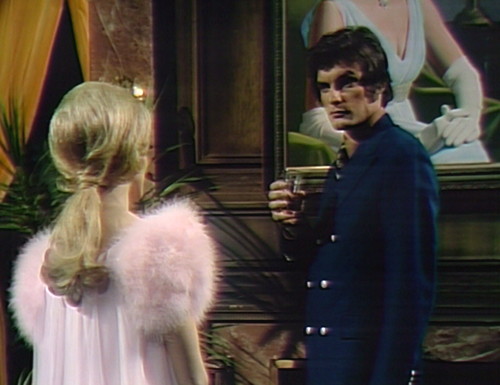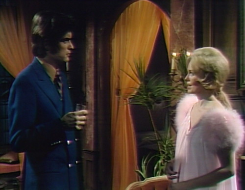 Quite a shift in target audience in these weeks of the show. DARK SHADOWS was never more obviously a kids’ show than during the Leviathan segment; it was never more uncompromisingly aimed at grownups than at the opening of the Parallel Time segment. It’s hard to think that there could have been many viewers who would have been young enough to be spooked by the shadow on Jeb, but mature enough to care about the quarreling couples living in the houses at Collinwood-2.