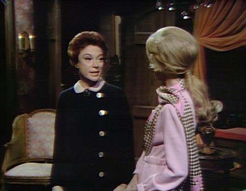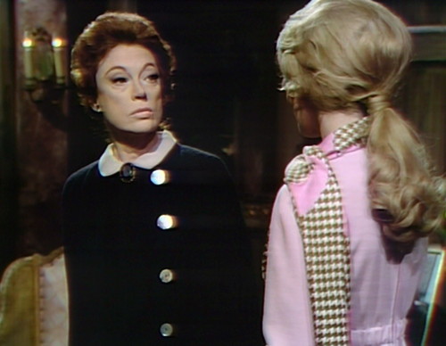 Anyway, Angelique is an ex-wife, and Quentin’s just brought wife #2 home to her new enormous mansion. Maggie’s not taking to it, really. Everybody keeps talking about Angelique all the time, as if she’s going to just get up from her grave and walk back into Collinwood. That’s a ridiculous notion, obviously, except now it’s happened, and here she is.