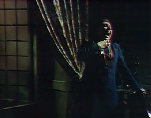 Now, the reason why they can’t get very far is that they’re really hurting for studio space in Parallel Time. Angelique’s room is enormous, for a Dark Shadows set, and Cyrus’ lab is pretty big too, so between those and the standing sets for the Collinwood foyer and drawing room, there’s hardly any space for anything else.