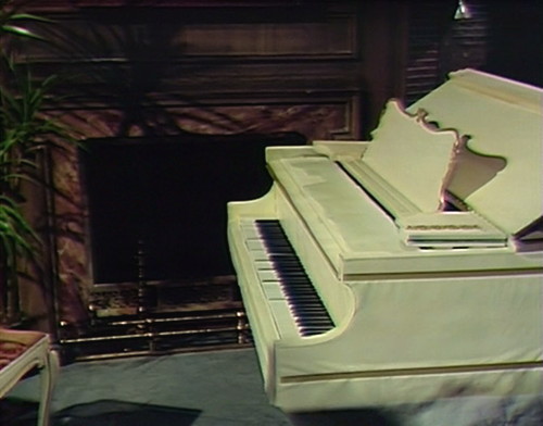 Restless spirits try to stay busy at Collinwood, so Alexis walks into her sister’s old suite, and finds the piano playing Angelique’s theme song, all by itself, because in Parallel Time, Dark Shadows is actually a spin-off of Scooby-Doo.