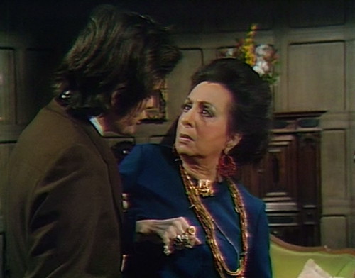So Quentin and Alexis have been going on as usual, grooming houseplants and making up excuses for things. In this version of reality, Quentin used to be Angelique’s husband, until she was murdered, and Alexis used to be her twin sister, until ditto, unless it turns out that Alexis actually is Angelique, back from the dead to reclaim her rightful place at Collinwood, which would mean that everybody needs to update their entries on Dark Shadows Wiki.
