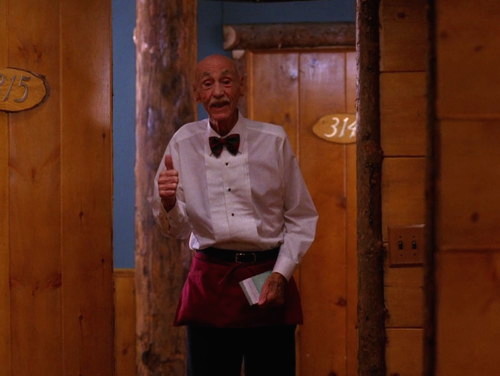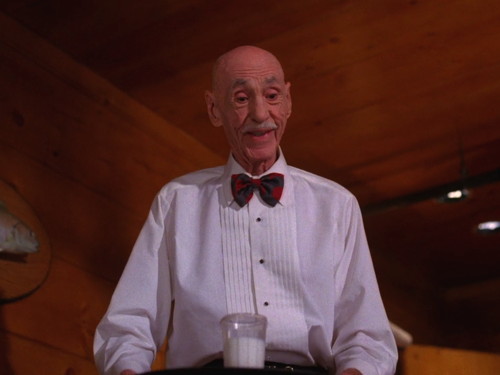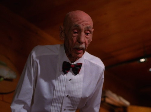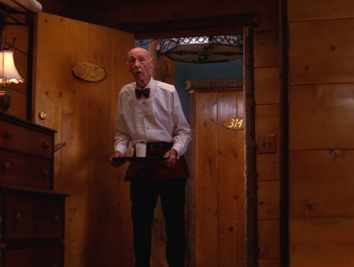 1. Actor note here, and not for DS: The room service guy on TWIN PEAKS was Hank Worden, a great character actor who spent most of his career playing old men, typified by Mose in John Ford’s THE SEARCHERS (and he was only 55 then). TWIN PEAKS was one of his last two TV gigs (the other being the finale of COP ROCK, as an elderly actor cast for a campaign commercial who even shout-outs the fact that he worked for John Ford). He’d carved out a fifty-plus year career (with a face like that, in addition to cowpokes and old men, he played his share of undertakers), and was either 89 or 90 when he did TWIN PEAKS (he died in 1992 at 91). I always appreciate that kind of longevity.
