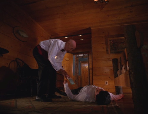 Agent Cooper doesn’t respond to this urgent communication, because he’s lying, as I said, on the floor of his hotel room, shot in the chest and potentially bleeding to death.