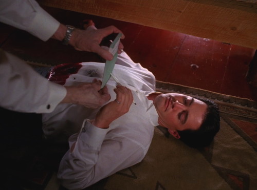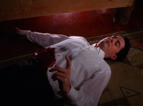 And then Agent Cooper, lying, as I said, on the floor of his hotel room, shot in the chest and potentially bleeding to death.