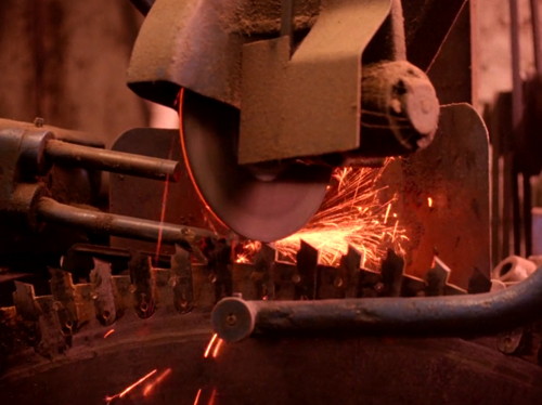 Actually, that’s not true. More specifically, the episode opens with a three-minute theme song, and even more specifically than that, it opens with a one-minute shot of a machine in a factory slowly doing something to another thing, over and over, with occasional sparks, to a very pretty tune that slowly builds to a climax, and then unwinds again. It’s the closest thing on television to hypnotism, and it serves as an entrance exam, to make sure viewers really want to watch Twin Peaks, and they’re not just leaving the TV on after The Father Dowling Mysteries.