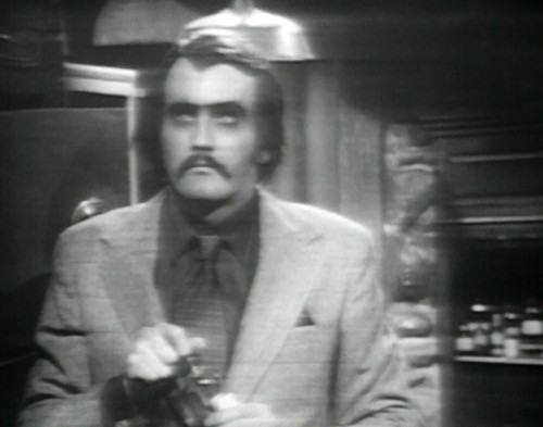 The lunatic candle standoff at the top of the episode was obviously Dark Shadows, because it was high-energy supernatural prop comedy, and it had Angelique in it. But the rest of the day is an afternoon-television adaptation of Dan Curtis’ Dr. Jekyll and Mr. Hyde TV-movie using three sets, including the bar from Dark Shadows.