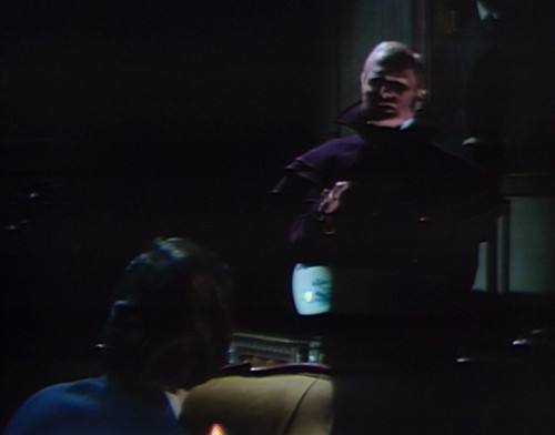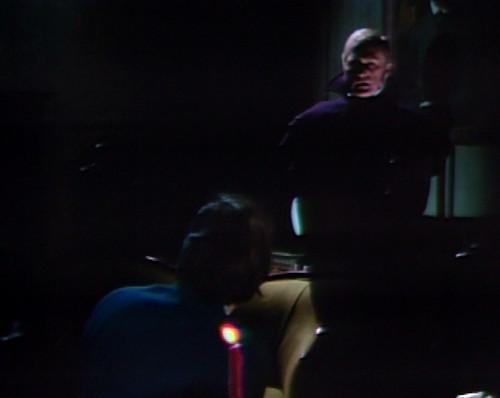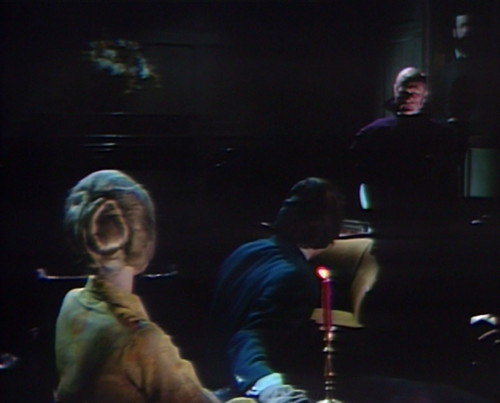 2. Well it kind of makes sense…Parallel Joshua (apparently along with every other dead Collins ancestor) has been disturbed from eternal rest by this, guess we can call it, Disturbance Of The Force (it’s not Alderaan exploding, but there’s certainly something going down, evil-wise). He doesn’t have any real details, but just like Fox News, he’s going to broadcast this breaking story. Besides, Quentin and Angelique are touching fingers, and Joshua (after meeting with all the other dead ancestors) got picked to pierce the veil and give the dire warning about…well, about something (they’re not sure) that’s definitely EE-VILL. So he doesn’t know that it’s some alternate version of his own son, but the dire peril is around here someplace. (The other ancestors were tired of materializing at séances – these people summon the dead like twice a day, for Pete’s sake! And the living never listen to the advice anyway…)