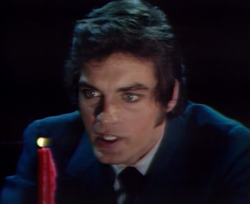 Now, Barnabas Collins is apparently an ancestor who they never really gave much thought to before, so they’re trying to reach his spirit through the power of darkness and dialogue. And somewhere in the afterglow, Parallel Barnabas is shaking his head. What are you asking me for? he shrugs. I can’t explain you to you.