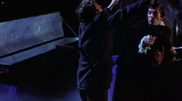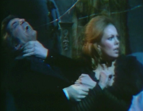 David:  Dan Curtis didn’t want this to be a feature-length soap, he wanted to make a Hammer movie. Dracula Has Risen From the Grave came out the year before, and was a huge hit. That was the third Christopher Lee Dracula movie, after Horror of Dracula and Dracula: Prince of Darkness. Hammer made their movies incredibly cheaply, but they were known for getting maximum production value for their dollars. They had access to all these great British actors, who were making nothing doing Shakespeare at the National Theater, and were really grateful for the few British film opportunities that they had. Also, the Hammer movies had the same bright red blood that Curtis used. It must have been the same brand of paint.