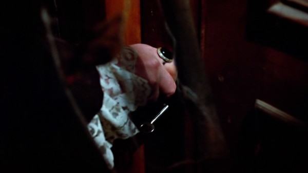 David:  And that tells you there’s blood coming. That’s the color of early 70s blood. In the early 1970s, even hyper-realistic crime movies like The French Connection used a shade of blood that clearly Curtis was really into. It’s a shade that I now associate with lipstick.