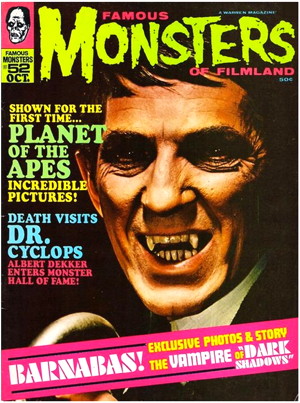 David:  Well, vampires weren’t mainstream in the 1960s, the way they are now. I would read Famous Monsters of Filmland magazine, and beg my dad to take me to the Strand Theater in Hartford, because vampire movies never played in the suburbs. You had to go to the downtown theaters, where people were always yelling at the screen; it was a blast. So seeing a vampire on TV every afternoon was impossibly great. The first Dark Shadows I saw was episode 700, when Barnabas used the I Ching to travel back in time to 1897.