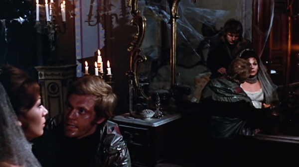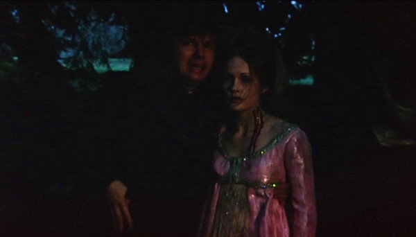 David:  Now we have a shot — this is not the most egregious, but it’s bad. One of the worst problems with the Hammer movies, and with House of Dark Shadows, is the decision to shoot day for night. Everyone knows the term, it just means that they’re going to underexpose the film, and pretend they shot this at night. They think they’ll correct it in post, but it never looks right.