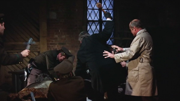 Danny:  The script is by Sam Hall and Gordon Russell, which is two-thirds of the show’s writing team, but it doesn’t really sound like Sam Hall’s dialogue. It’s not witty or clever, there are no funny exchanges. It’s not bad dialogue, it’s fine, but it feels like Curtis didn’t want fancy dialogue to distract people from the action.