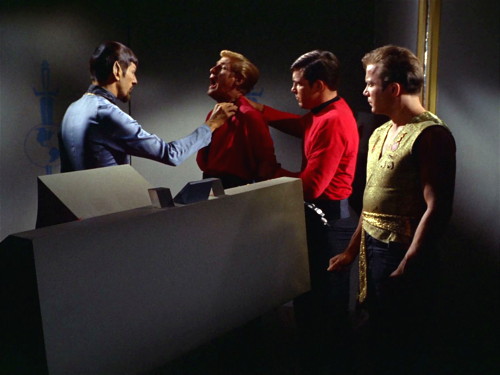 Specifically, I want to look into “Mirror, Mirror”, a season two episode that aired on October 6, 1967. In our reality, Dr. Woodard encountered the ghost of Sarah in the mausoleum that day, but in this alternate band of time, four members of the USS Enterprise crew are spending the afternoon negotiating a treaty with some conceited jerks called the Halkan Council.