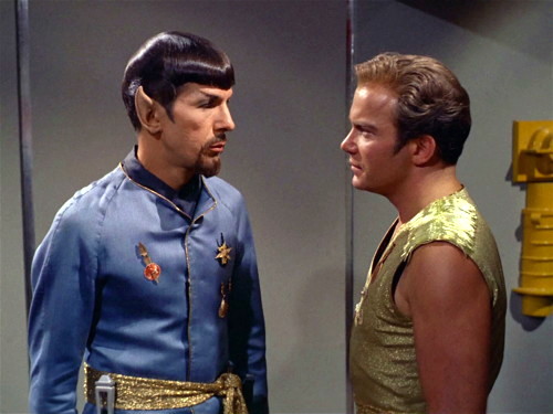 1. Hate to be a nerd, (ah, actually I like being a nerd) but here’s the answer to how long the Terran Empire would have lasted with out Kirk’s influence. In the episode, Kirk says to Spock “How long before the Halkan prediction of galactic revolt, is realized?” Spock says 240 years, and that it would overthrow the Empire. This lead Kirk into his “Illogic of Waste…” speech.