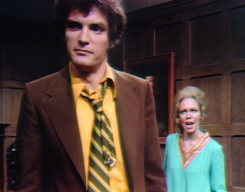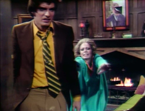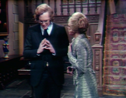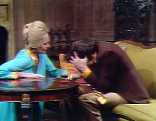 Barnabas is trapped in Parallel Time, a fantasyland where everything’s the same as our world, except the stuff that isn’t. To the extent that there’s any logic at all, it’s the logic of dreams. People appear and disappear, taking various forms and shapes. Things that seemed dramatic and important in an earlier stage melt away, replaced by other concerns that are equally difficult to express. The ring. The seance. Someone is humming. Where is that sound coming from? Evil, calling to evil. Didn’t I tell you to take down that painting? The people in that room are different, but the same. Who was standing nearby when she died? We couldn’t explain it, so we burned the body, and nobody saw the fire, because we were quiet. Come, we will burn the book together. What happened to the ring? A skeleton, hanging in the cupboard, extinguished by candlelight. She was in Italy visiting with friends, now she’s in our house, visiting with friends. Does she have a job? What does she do for a living? Shouldn’t one of us be going to work occasionally?