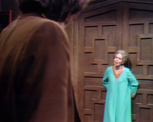 In addition to her room at Collinwood, Julia also seemed to have a second home, or at least a major hangout, at the Old House, judging by the large amount of time she spent there, either with or without Barnabas. I’ve lost count of how many times she was there in the Old House parlor — nervously glancing at the clock or her wristwatch — worrying, waiting for Barnabas to show up? She must have had her own key made! Oh, that’s right, I forgot the doors are mostly left unlocked — even with all those monsters roaming the estate grounds!