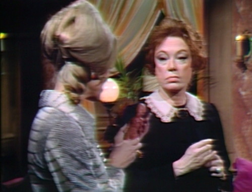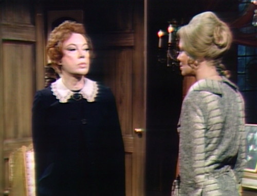 Attic, Angelique’s room, attic, Angelique’s room, attic, drawing room, Angelique’s room, Angelique’s room, attic, attic, drawing room. If you like watching people walk back and forth between one room and another, then Dark Shadows has an episode made just for you.