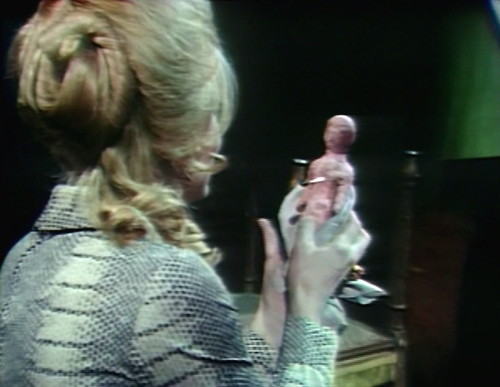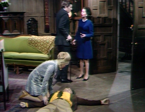 Except here she is twenty-two minutes later, and she’s attacking him again, this time by sticking a silver pin into a voodoo doll and triggering a massive coronary. Then she heads downstairs, and finds exactly what she ought to expect — Quentin lying on the floor, and everybody else standing around, telling each other not to have hysterics.