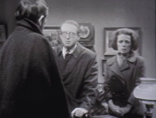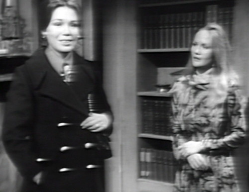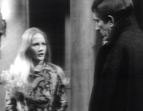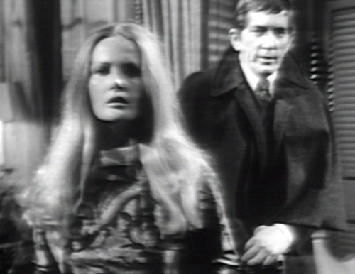 The master videotape for this episode was either lost or damaged beyond repair, so the version we see in syndication and home video is a black-and-white kinescope copy, originally made to provide a copy of the episode to local ABC stations who aired Dark Shadows in a different timeslot. There are 20 episodes over the course of the series that we only have in kinescope form, and this is the last one, hooray. There’s one more missing tape — episode 1219, in February 1971 — and unfortunately, they’d stopped making kinescope copies by then, so that’s Dark Shadows‘ one actual missing episode.