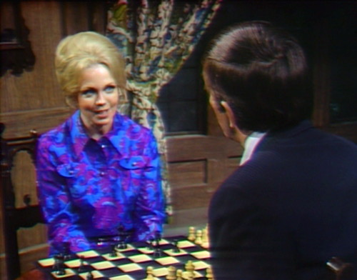 But the point is: Barnabas is having scenes with Angelique! There’s another one later on, too, and they’re playing chess in it, which is delightful. Chess is one of those metaphors they use on Dark Shadows when they want to announce We’ve decided we’re using metaphors again! like they do with mirrors and candles and werewolves. This time, Barnabas asks “Alexis” if she brought any of her sculptures with her when she came here from Italy. She says no, and he asks if she’s planning on doing any sculpture while she’s here, and she says she doesn’t know, and he raises a couple eyebrows and says, Isn’t that unusual? as if he expected her to bring several blocks of marble through airport security.