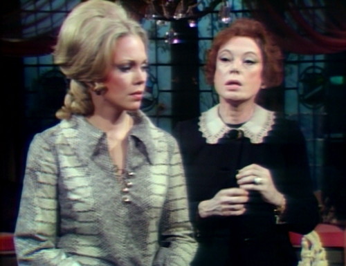 I’ve been talking all week about the Dark Shadows quality improvement program, which I’m attributing to exec producer Dan Curtis coming back to New York after shooting HODS. The show has been drifting for a couple months, filling up time with meaningless story tangles that didn’t accomplish anything. But this week, suddenly there’s some fresh energy — characters are leaving their storyline silos and getting into each other’s business, and the dialogue is sharper.