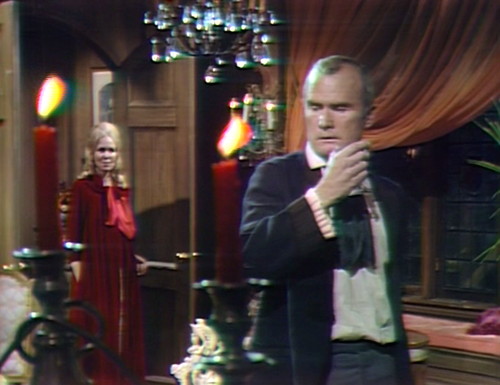 That’s not how they do it on Dark Shadows, of course; it doesn’t have enough Chromakey. Instead of the housekeeper, they just go right ahead and let Rebecca take over, talking smack from beyond the grave.