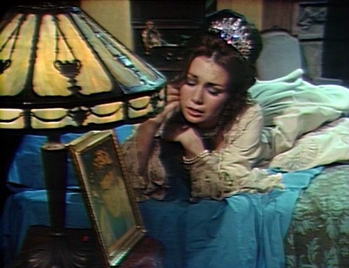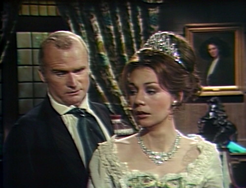 And this little scene-ending shot from yesterday, Barnabas thoughtfully playing with a chess piece as Angelique makes plans over his shoulder. Dan is back, clearly, and determined to keep plussing the show wherever they can.