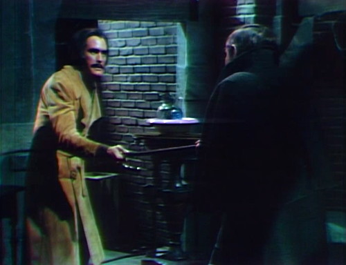 Yaeger’s sword-cane brandishing doesn’t come off as well as it should — the sword slips partway back into the cane, so it’s kind of stubby when he holds it towards Barnabas.