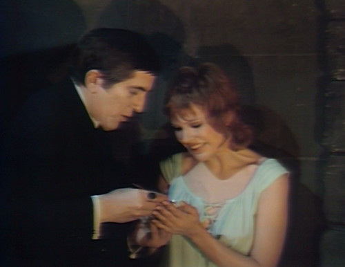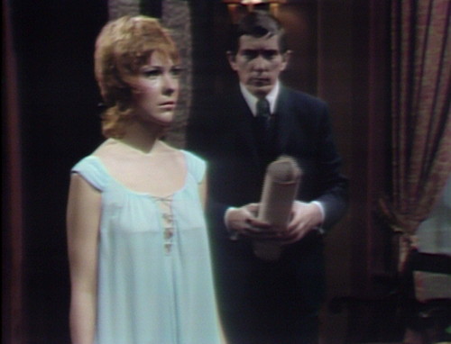 Indeed, Roxanne could do those things even without appearing, simply as an off-screen character who is mentioned from time to time. There are a couple of advantages to showing her- with the repertory theater approach, if she were under the sheet the whole time we would keep speculating about which actress they are going to bring back when her face is revealed. And she gives us a chance to see Barnabas trying something new. He’s trying to form a relationship with someone who is not a member of the family, not raw material to be Josette-ified, and not a tool for him to use in whatever harebrained scheme he’s mixed himself up in. He’s no good at it, of course, but it’s interesting to watch him try. So I would put Roxanne a couple of steps up from the Portia Fitzsimmons level in the hierarchy of functional supporting characters.
