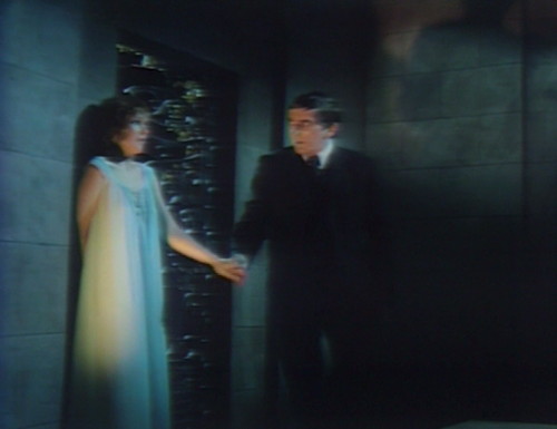 When Barnabas leads Roxanne into the mausoleum, they do give us a little bit of a reaction — she’s scared, and needs to be coaxed into the secret room. Unfortunately, that hesitation doesn’t give us any new information — anybody would be nervous, being led into this spooky place by a stranger.