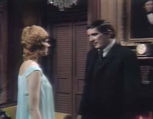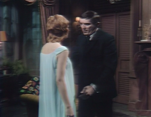 Indeed, Roxanne could do those things even without appearing, simply as an off-screen character who is mentioned from time to time. There are a couple of advantages to showing her- with the repertory theater approach, if she were under the sheet the whole time we would keep speculating about which actress they are going to bring back when her face is revealed. And she gives us a chance to see Barnabas trying something new. He’s trying to form a relationship with someone who is not a member of the family, not raw material to be Josette-ified, and not a tool for him to use in whatever harebrained scheme he’s mixed himself up in. He’s no good at it, of course, but it’s interesting to watch him try. So I would put Roxanne a couple of steps up from the Portia Fitzsimmons level in the hierarchy of functional supporting characters.