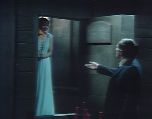 When Barnabas leads Roxanne into the mausoleum, they do give us a little bit of a reaction — she’s scared, and needs to be coaxed into the secret room. Unfortunately, that hesitation doesn’t give us any new information — anybody would be nervous, being led into this spooky place by a stranger.