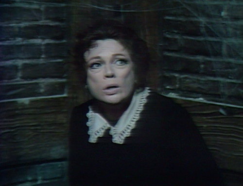 And the most terrible part is that the best character on the show is locked in the basement. All this time that Barnabas and Roxanne are standing around the drawing room chattering about love and being afraid of things, Julia is waiting to get rescued.